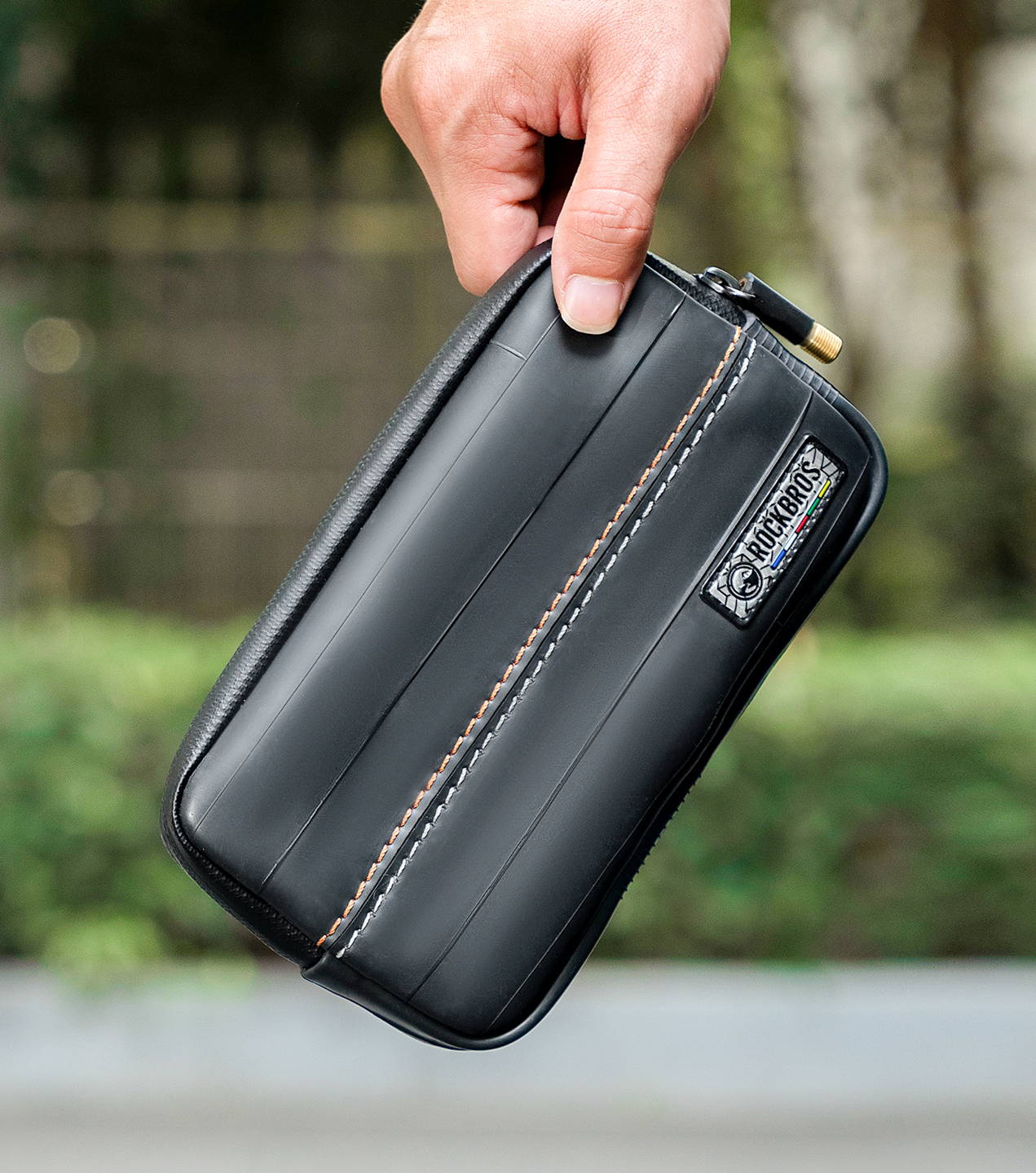 ※ファスナーの取手部分にも実際のバルブパーツを再利用しています。使用されるバルブは英式以外のタイプになる場合もございます。