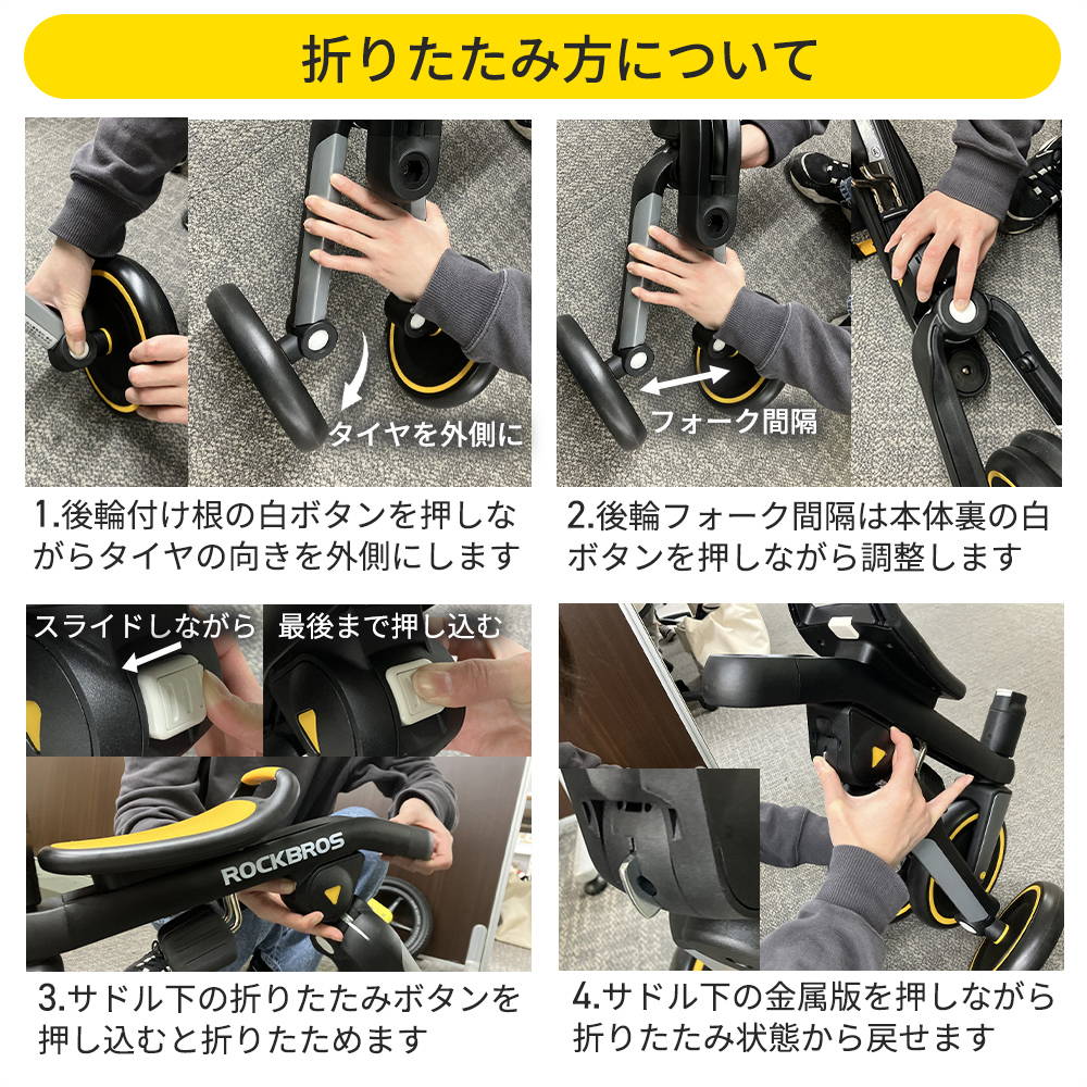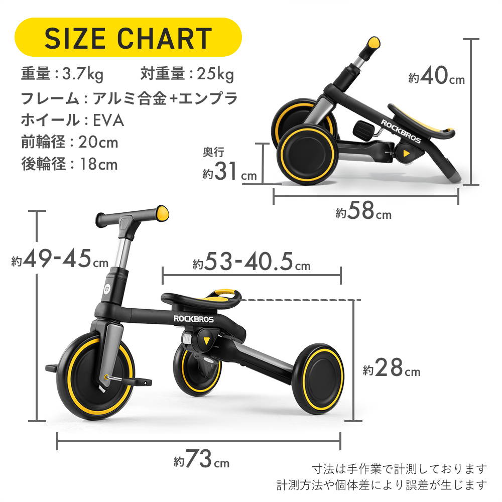 ハンドル高さ調整(約3.5cm)/ サドル前後調整(約13cm)