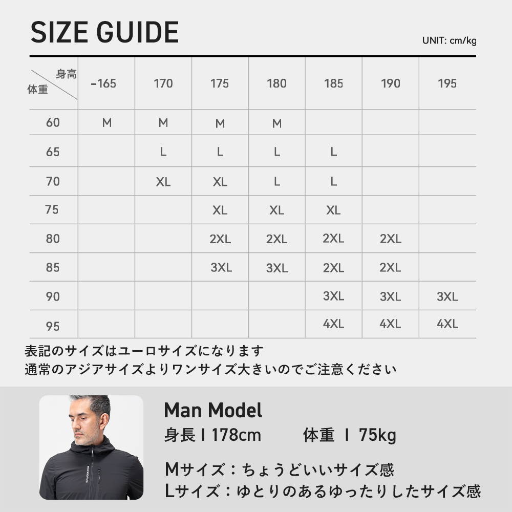 M〜4XL(ユーロサイズ)