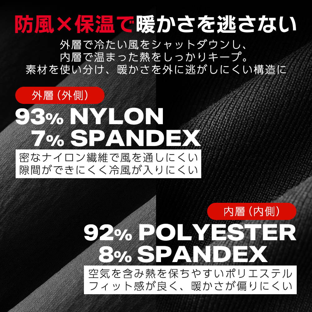 内層(内側):ポリエステル92%/スパンデックス8%