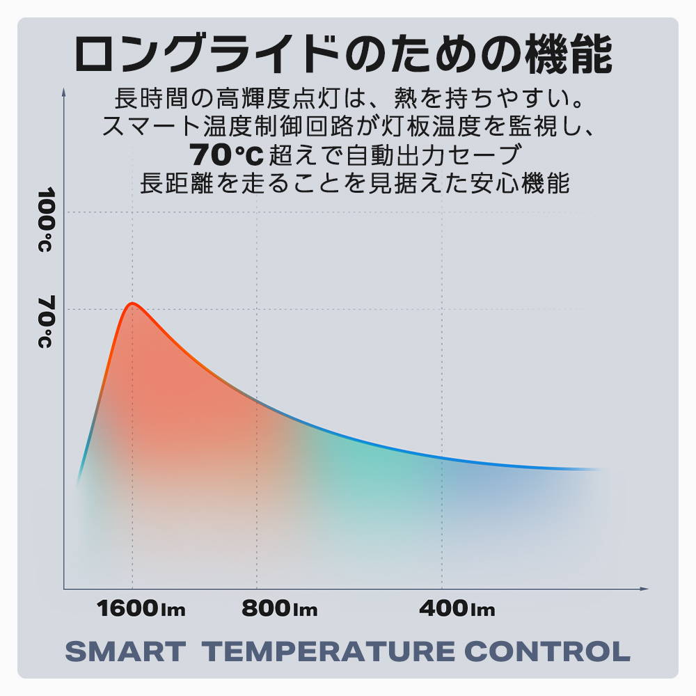 ・スマート温度制御回路搭載(70℃超で自動出力セーブ)