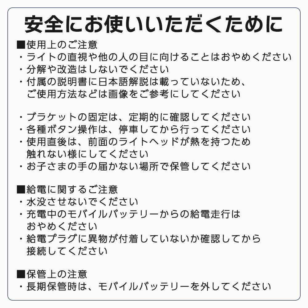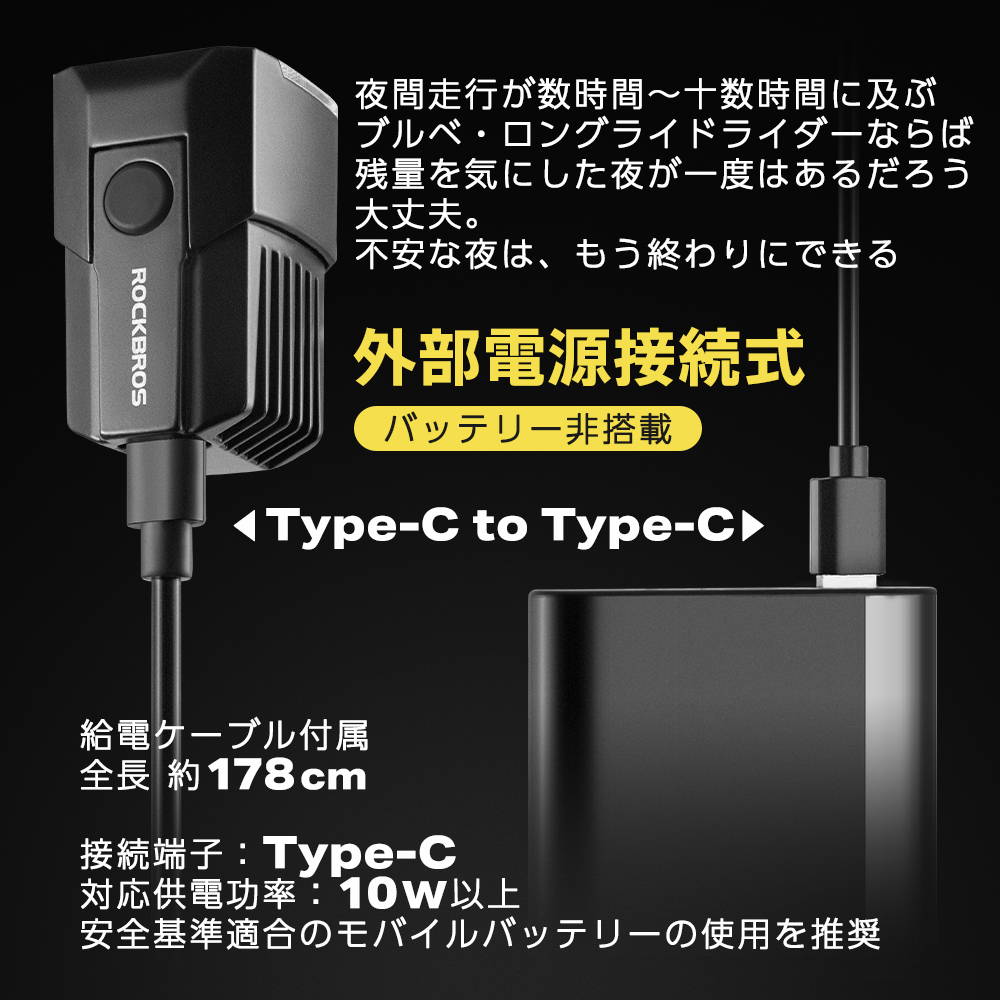 ・内蔵バッテリーなし、モバイルバッテリー接続で点灯(外部電源専用設計)