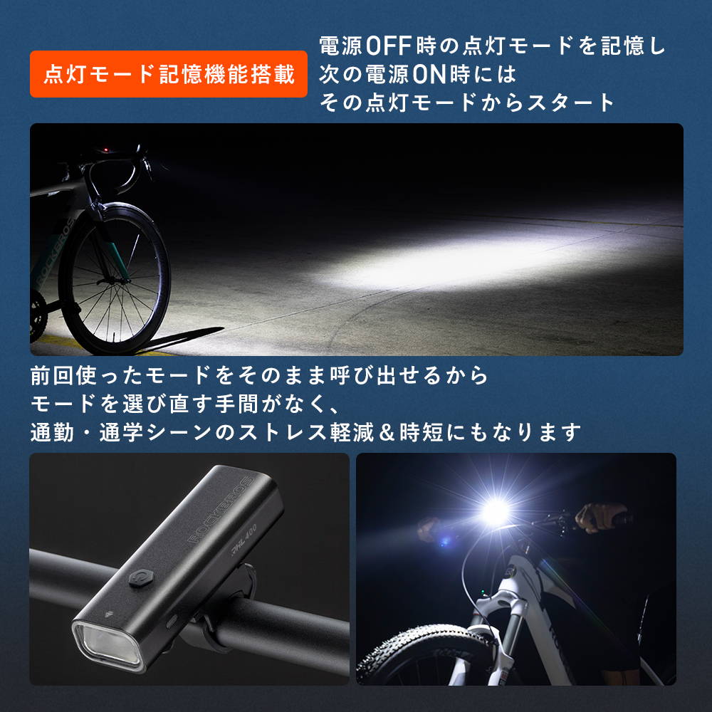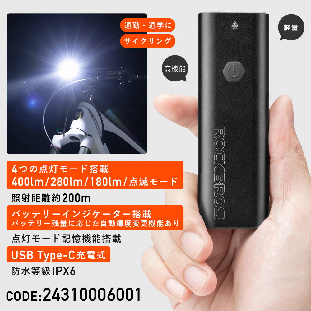 400lm / 280lm / 180lm / 点滅
