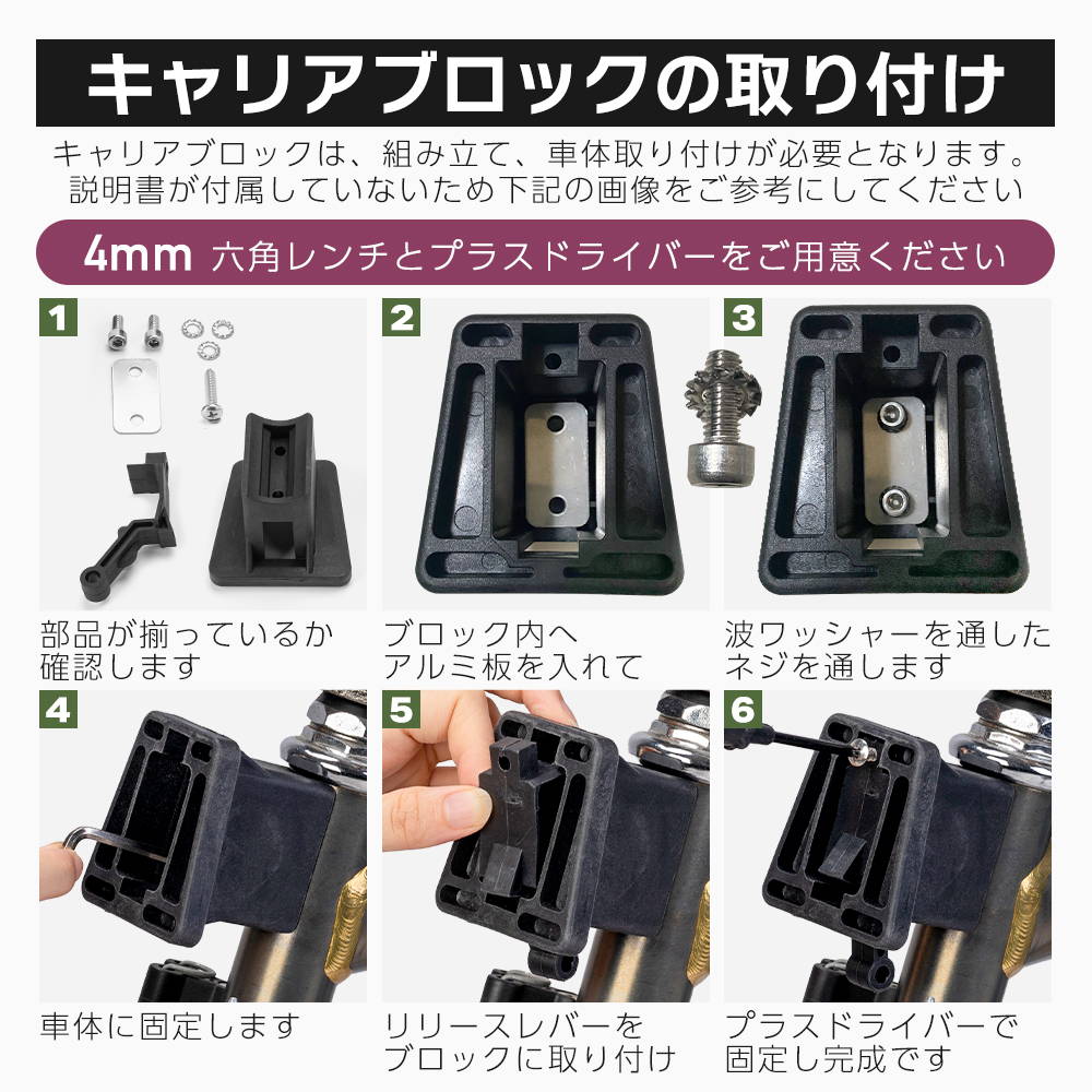 ・キャリアブロックが取り付け可能か、ネジ穴間の中心距離(取り付けピッチ)を必ずご確認ください。適応の取り付けピッチは「約2.6cm」となります