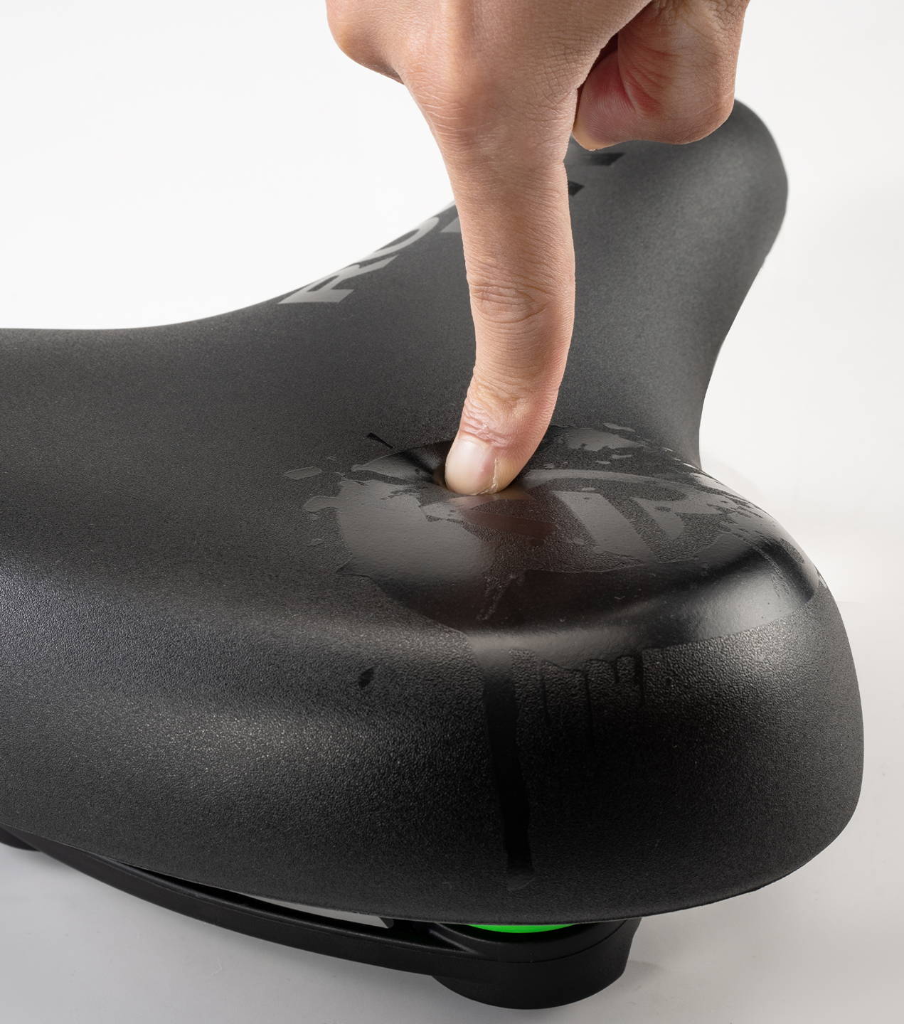 PUレザー、高密度フォーム、PP、PVC(サドルレール部分のロゴ)