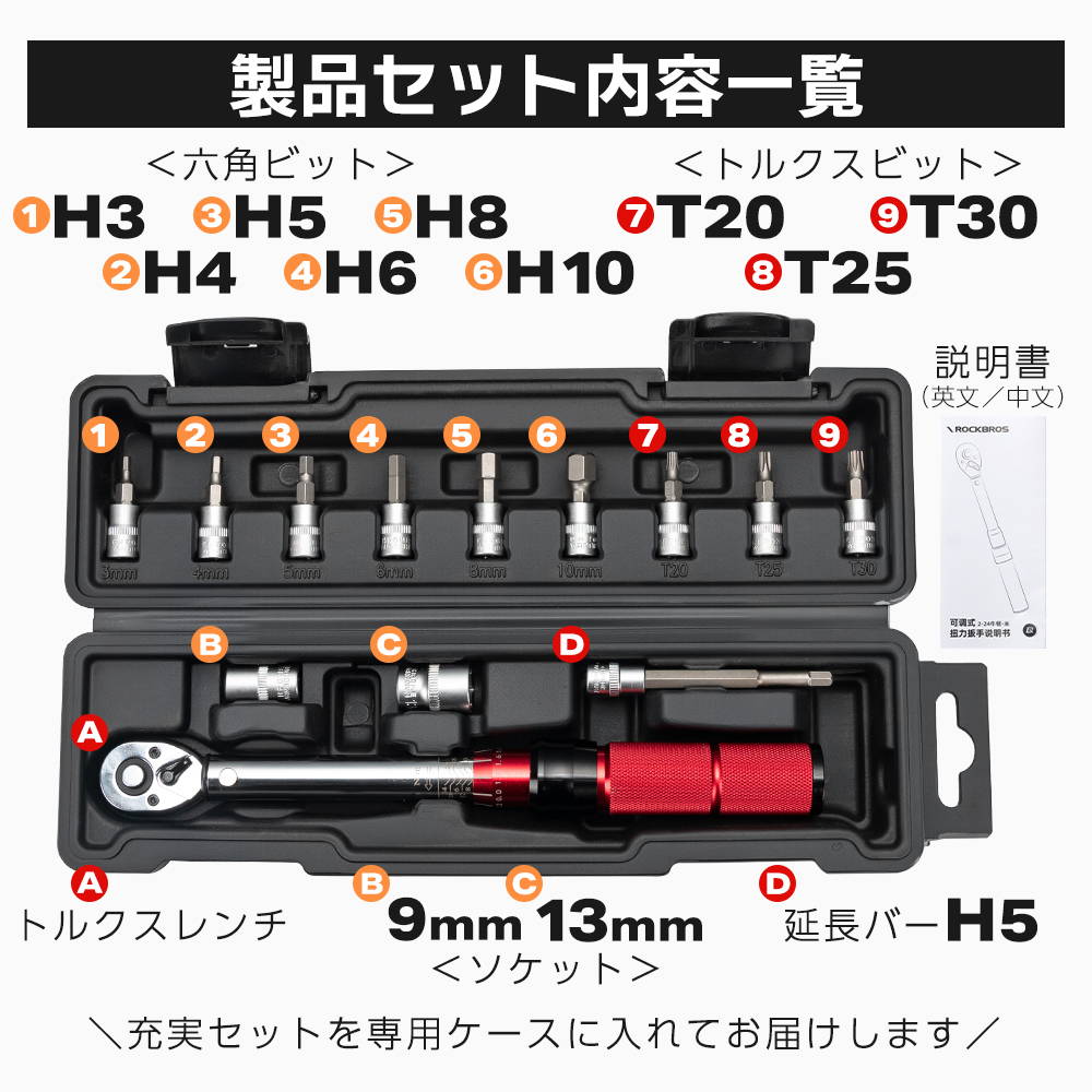トルクレンチ(1)・専用ケース(1)・H5 延長バー(1)