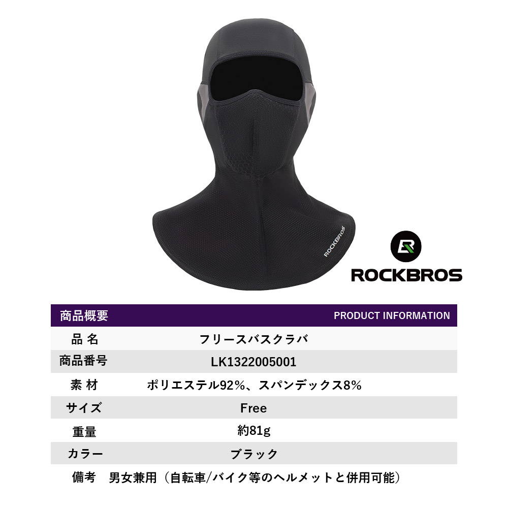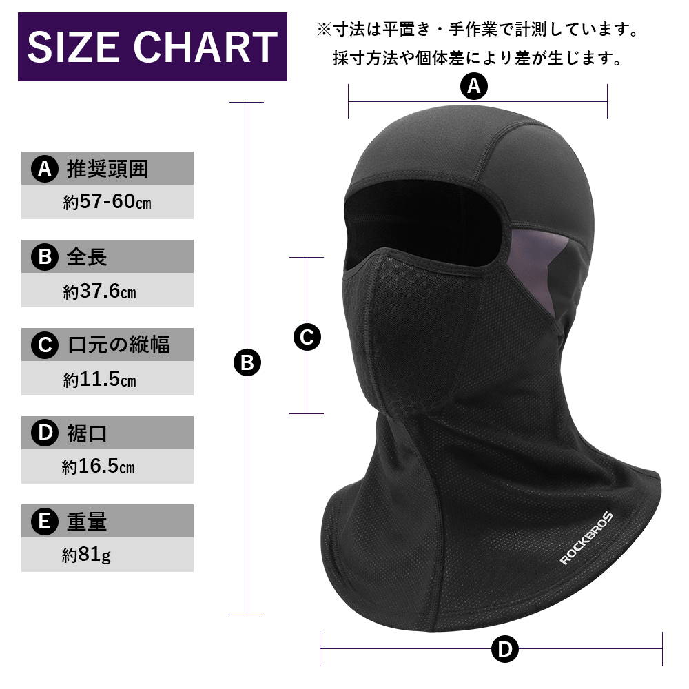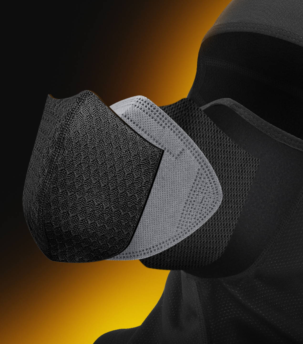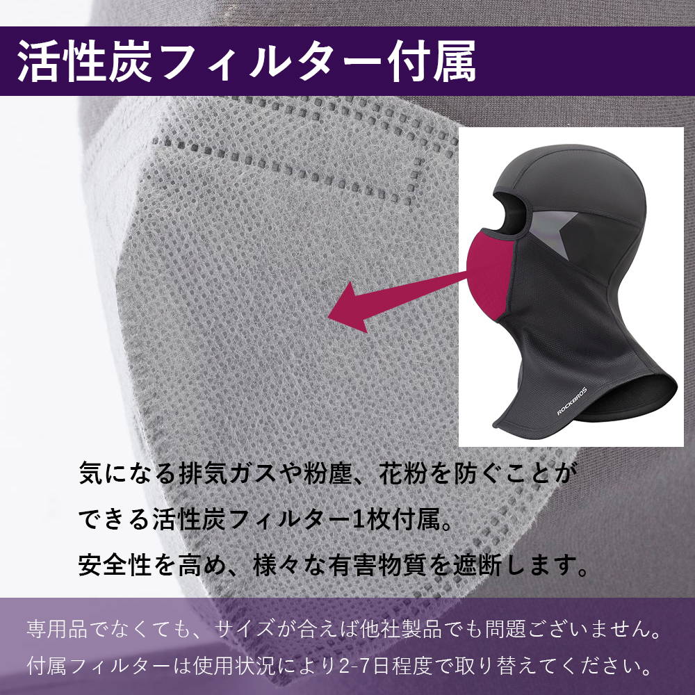 バラクラバ本体、交換可能な活性炭フィルター1枚