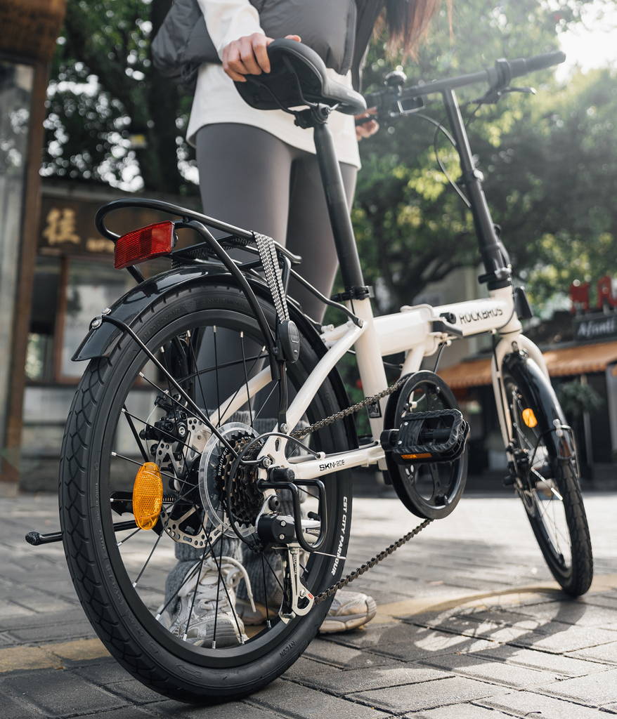 52Tの大径チェーンリングと170mmクランクアームの組み合わせにより、20インチホイールでも高いギア効率と推進力を実現